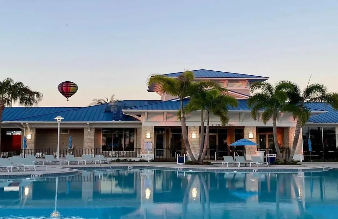 Situated 7 km from the West Gate Flea Market, Bright & Spacious 7Br Pool Villa W/ Game Loft | New Windsor Cay Resort Near Disney Orlando invites guests to relax at a patio.